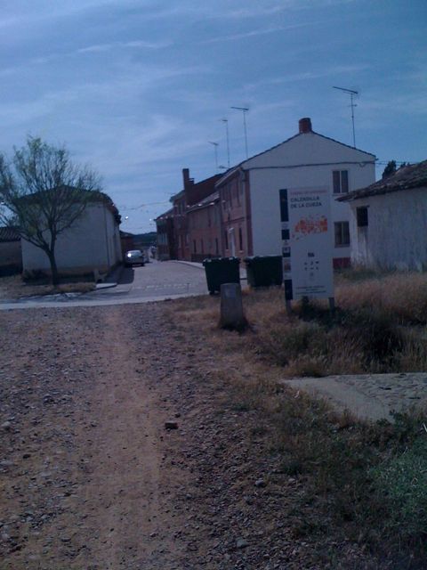 Una vez salidos de Carrión ha llegado la peor parte del Camino… Un tramo de unos 13 kilómetros de pistas pedregosas insufribles de las que te dejan las posaderas que no reconoces si son de Losantos o de Carot 😉 Pistas de las que no acaban nunca, de hecho, los últimos dos kilómetros creía que no iban a terminar jamàs, cuando más fuerte pedaleabas, más se ensanchaba el horizonte, y de pronto, detrás de un pequeño alto… Calzadilla dea Cueza … Gracias Santiago…